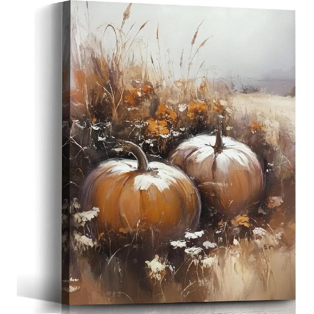 Voxitura Farmhouse Fall Pumpkin Fall Wall Art Canvas, Vintage Cottage Barn Wall Decor for Thanksgiving Kitchen, Rustic Autumn Paintings Pictures