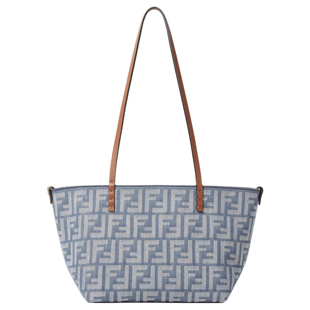 Fendi Roll Reversible Design Gold Accents Metal Details Cotton Tote Bag Shopping Bag Shoulder Bag Small Women tote bags blue 8BH424-AUT4-F1SXQ