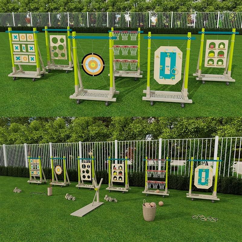 Kids Outdoor Toy Set: Wooden Basketball Hoop, Ring Toss, Sandbags, Bow & Arrow for Sensory Play — koupit online v obchodě na marketplace Joom