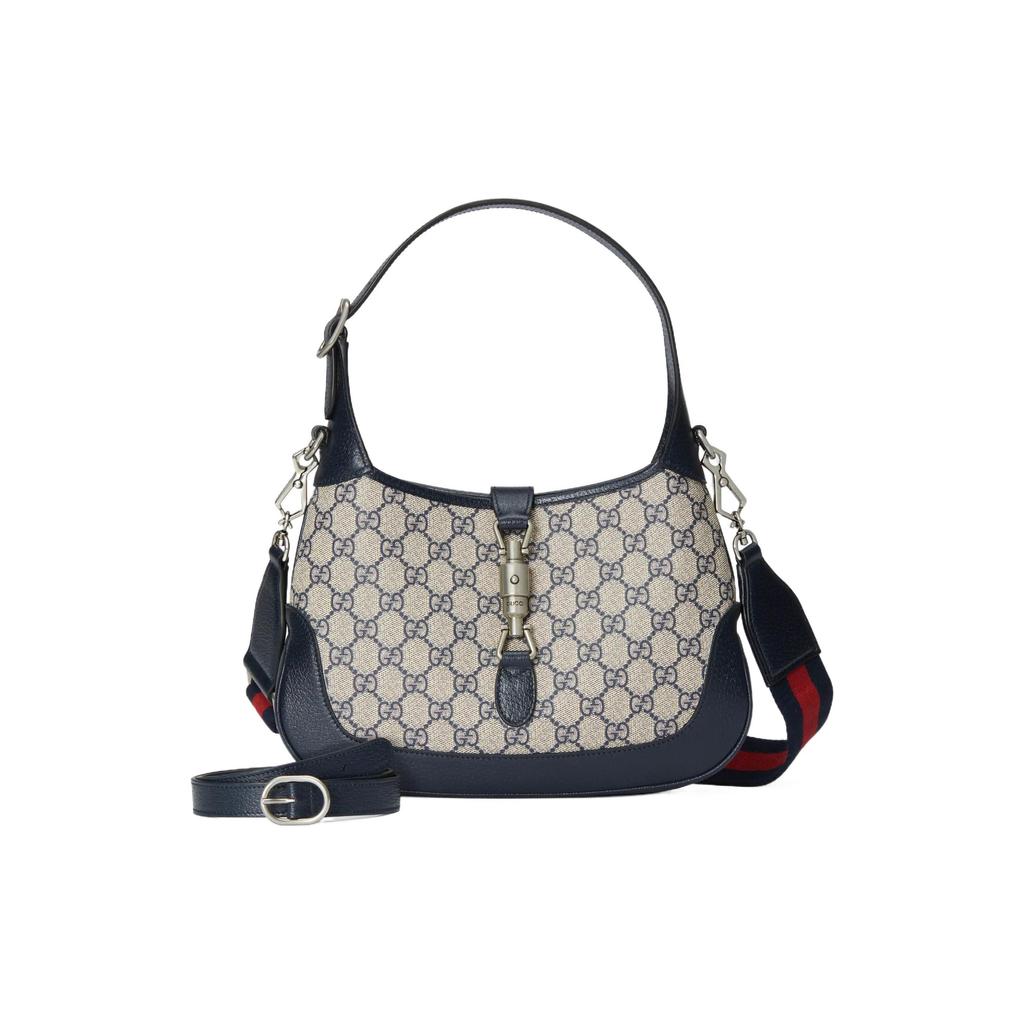 Gucci Jackie 1961 Gold Lock Monogram Canvas Leather Shoulder Bag Women shoulder bag blue gray 678843-96IWN-4076