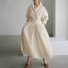 2026 Nové dámské bavlněné lněné tunikové šaty, Šaty ve stylu košile s vysokým pasem a páskem ve vysokoškolském stylu, Volné midi šaty s knoflíky vpředu