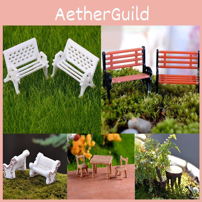 Miniature Garden Bench Set Durable Resin White Chair And Brown Table Micro Landscape Decor — koupit online v obchodě na marketplace Joom