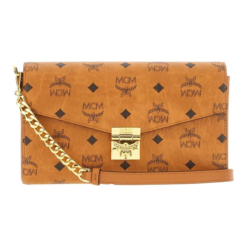 MCM Tracy Printed Logo Gold Hardware PU Envelope Shoulder Bag Women bags Brown MWREAXT06CO001