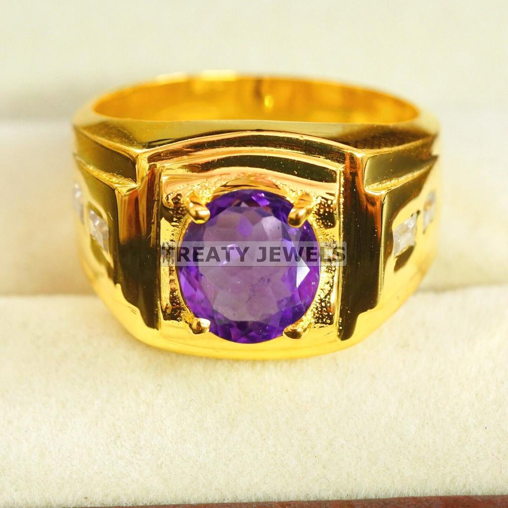Amethyst Oval Cut With 925 Sterling Silver Gold Plated Ring For Men's #A676 JL375658847179 — koupit online v obchodě na marketplace Joom