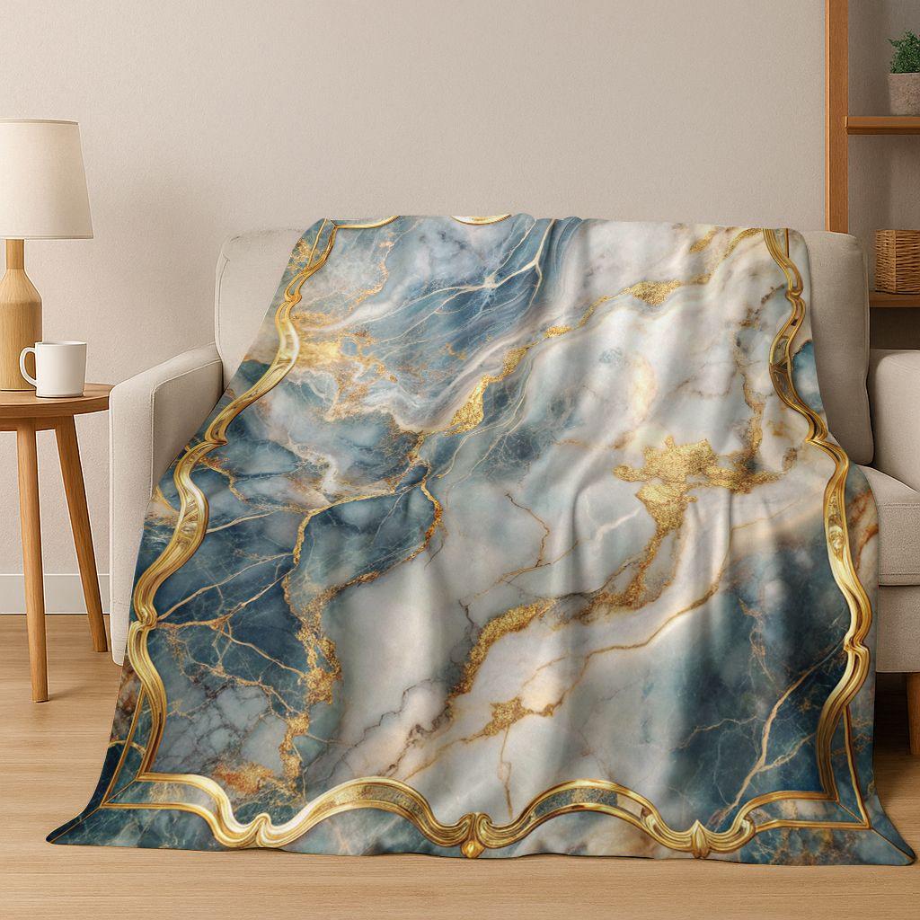 Dream Colorful Stone Texture Marble Black Green Gold Flannel Blanket,Cozy Soft Throw Blanket for Home Bedroom Bed Sofa Gift