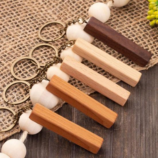 Wooden Keychain with Alloy Keyring Rectangular Pendant DIY Customization Painting Engraving Hot Stamping Key Chain Tags Bag Charm — koupit zboží online s dopravou zdarma po celém světě!