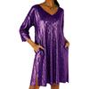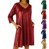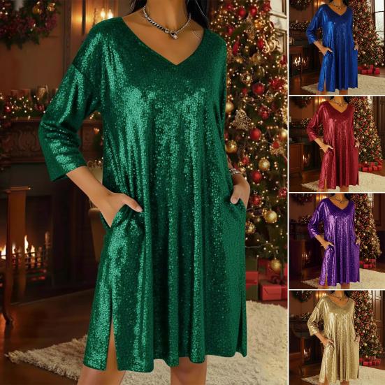 Women's Sequin Mini Dress Glitter 3/4 Sleeve V-Neck Dress Sparkly Cocktail Party Club Split Dress with Pockets — koupit online v obchodě na marketplace Joom
