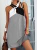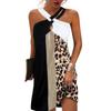 Sexy mini šaty s halter výstřihem a leopardí patchworkovou potiskem, letní bez rukávů, plážové ležérní šaty, plus size, volná dámská tunika