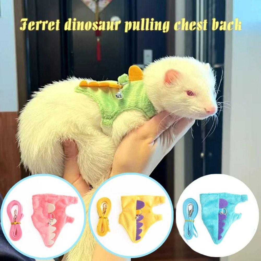 Roztomilý krátký vodítko pro fretku, typ vesty, nastavitelný, s rolničkou, tvar dinosaura, pro chůzi s myšmi, procházka s mazlíčkem