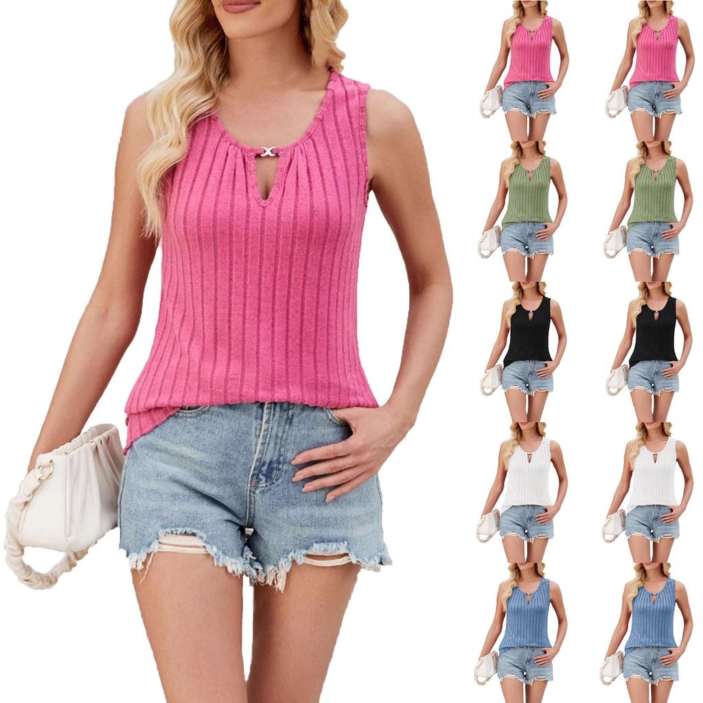 Women's Fashion Casual Short Sleeve Basic Texture Color U Neck T-shirt Vest Top