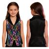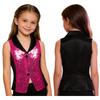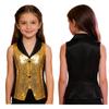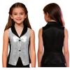 Třpytivá pódiová vesta pro dívky: Saténová vesta s kontrastními barvami, klopovým výstřihem a patentkami, Nezbytnost pro taneční kostým