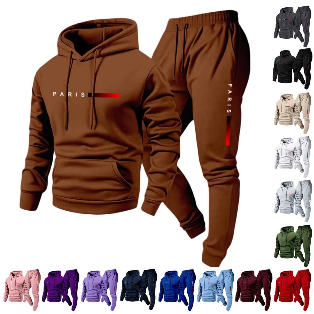 Men's Casual Color Letter-printed Sweatshirt Set, Men's Fleece Hooded Drawstring Sweatshirt And Sweatpants Two-piece Set — koupit online v obchodě na marketplace Joom
