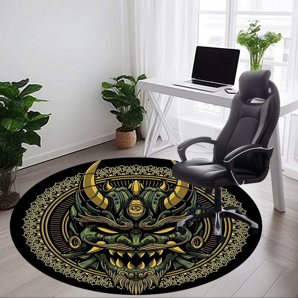 1PC Demon Mask Office Round Rug, Non slip, Soft and Durable Office Rug for Interior Decoration, Perfect for Office