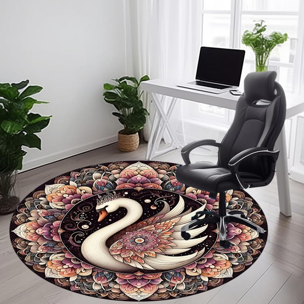 1PC Swan Mandala Art Office Round Rug, Non slip, Soft and Durable Office Rug for Interior Decoration, Perfect for Office
