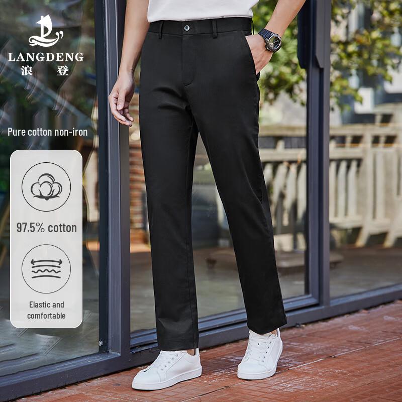 Langdeng Men's Wrinkle-Resistant Straight-Leg Casual Pants