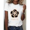 Dámské tričko s potiskem kamélií, kulatý výstřih, krátký rukáv, středně pružné, pratelné v pračce, ležérní, pro venkovní použití, celoroční top