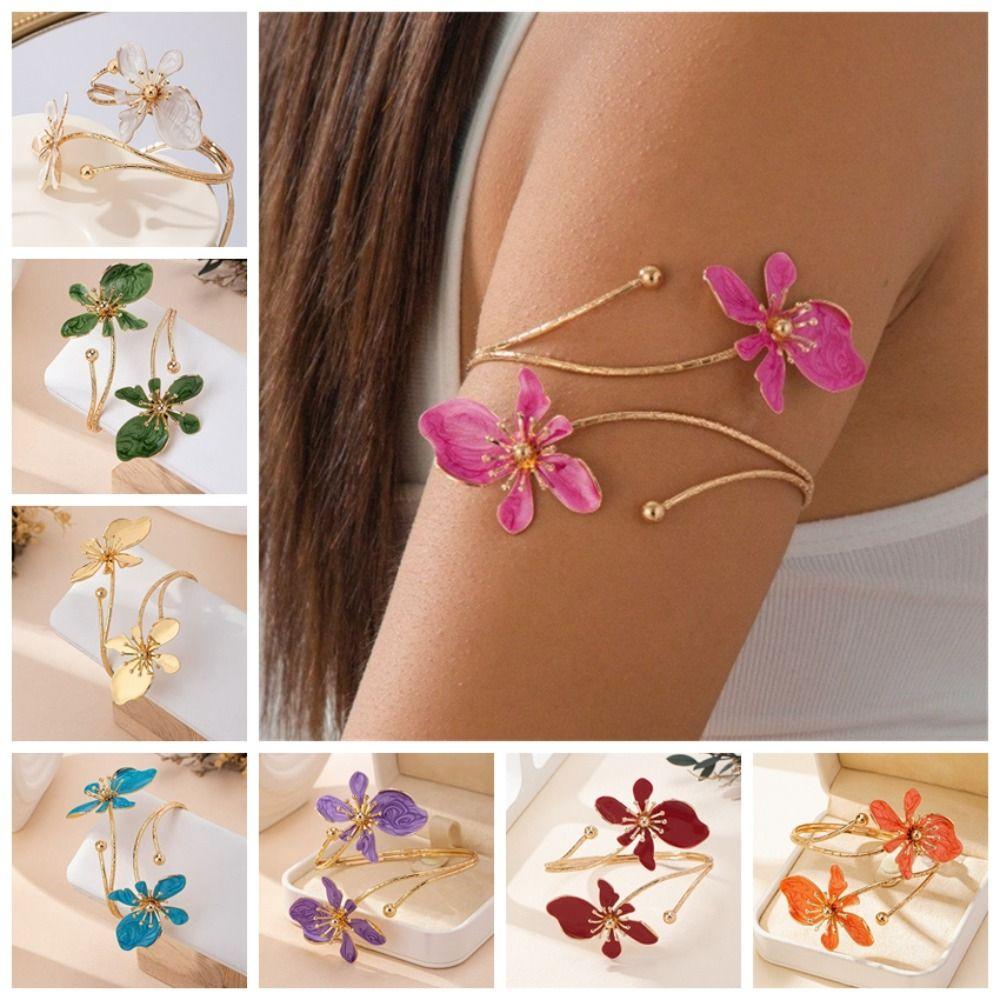 Enamel Glaze Flower Bracelet Floral Armband Elegant Open Arm Bangle Girls — koupit online v obchodě na marketplace Joom