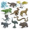 This wildlife model set features realistic replicas of Australian animals, including platypuses, koalas, kangaroos, ostriches, and snakes, crafted from durable PVC material, providing detailed representations for educational or decorative use.