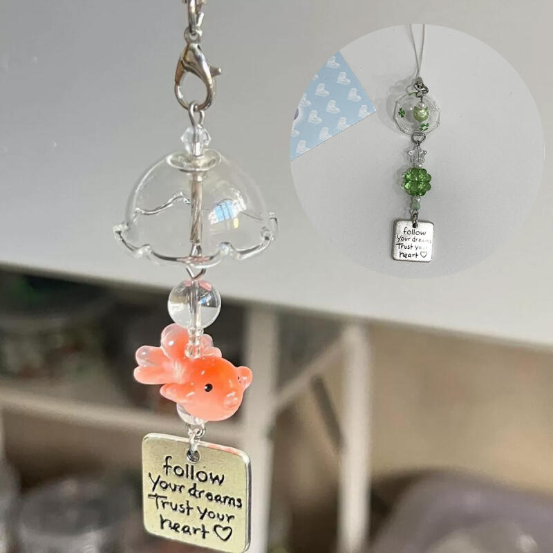 Hooling Amulet Goldfish Four-Leaf Clover Keychain Cell Phone Strap