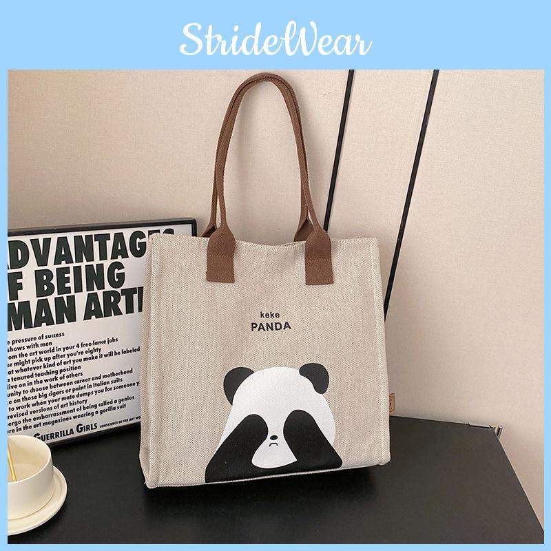 Large Capacity Panda Canvas Shoulder Bag Women Letter Cartoon Cute Tote Bag Street Fashion Shopping Bag — koupit online v obchodě na marketplace Joom