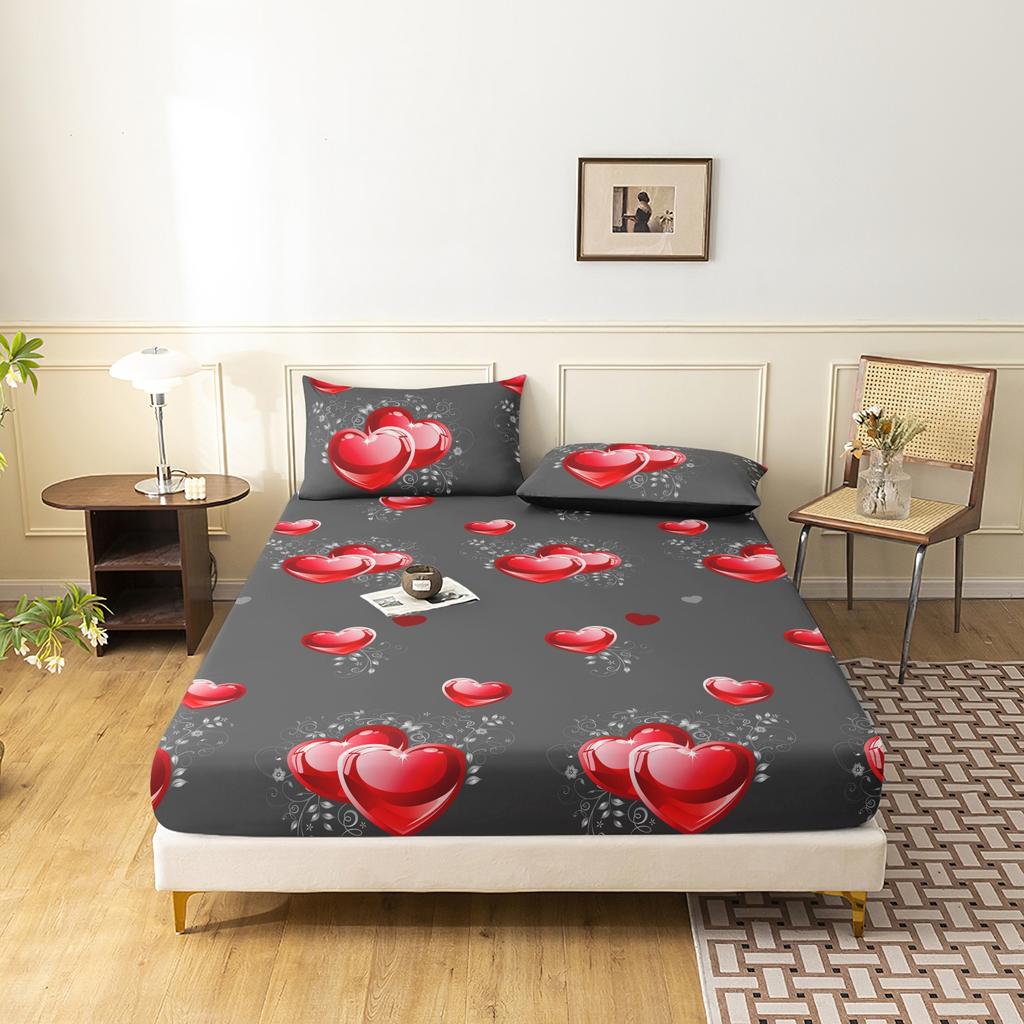 3pcs Fitted Sheet Set,Romantic Valentine'S Day Peach Heart Print Bedding, Love Printed Fashion Classic Soft And Comfortable — koupit online v obchodě na marketplace Joom