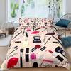 3pcs White Fitted Sheet Sets 100% Polyester For Girls Decor Nail Polish Tools And Hearts Printed Flat Sheet With 2Pillowcases