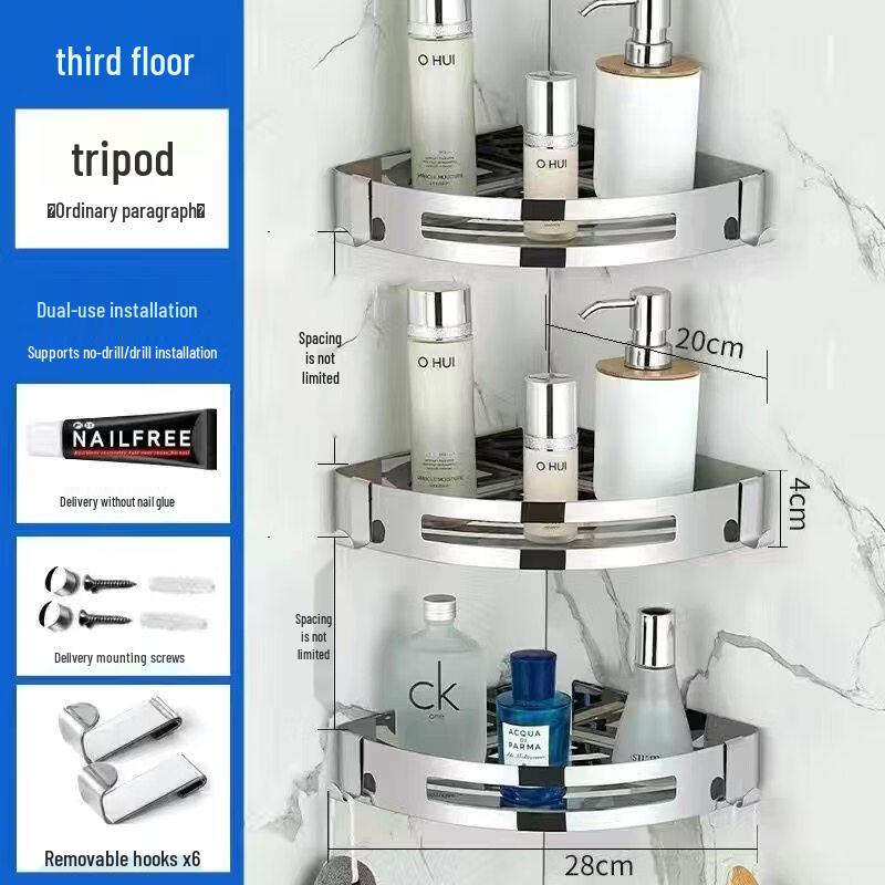 Zesílená rohová koupelnová polička z nerezové oceli 304 — koupit online v obchodě na marketplace Joom