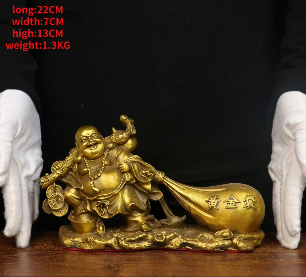 Copper Maitreya Buddha Statue Big Belly Laughing Buddha Ornament Monk Gold Bag Company Opening Gift