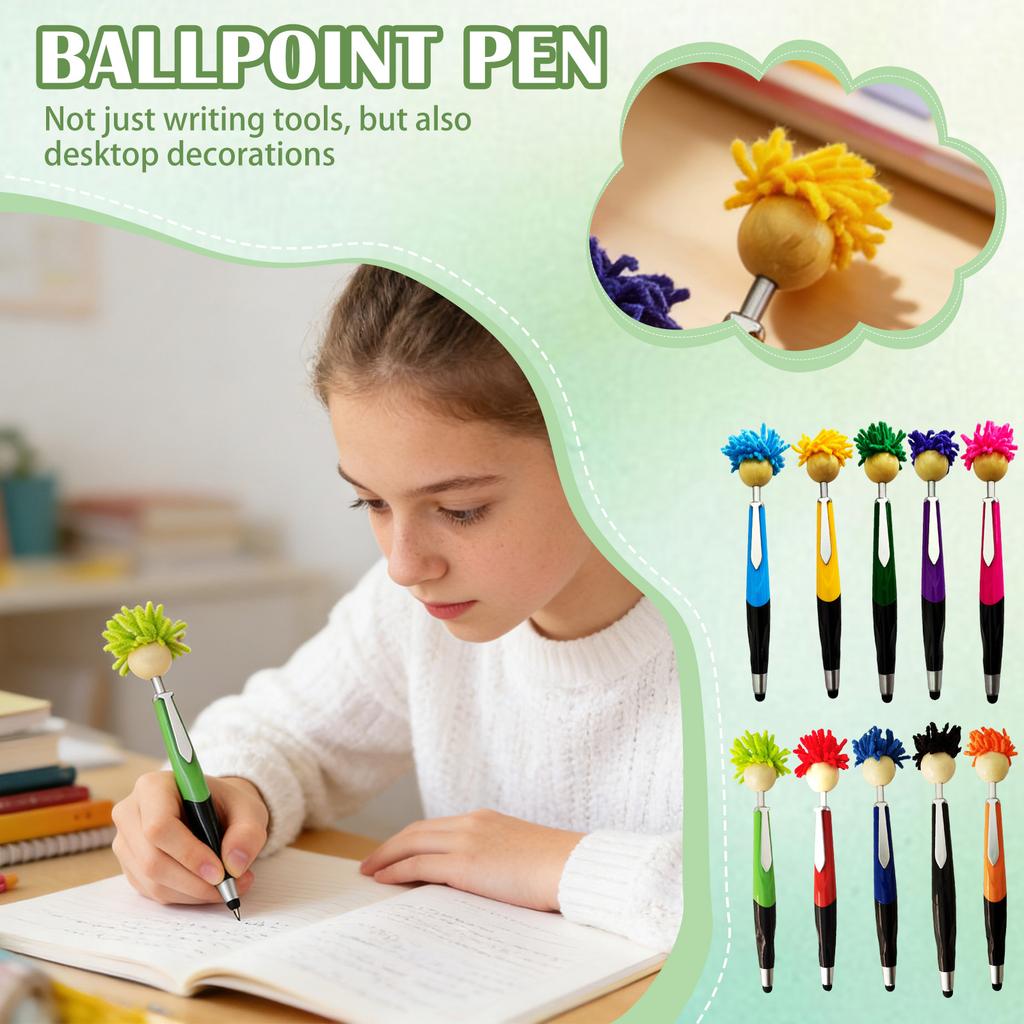 3ml Nová kuličková tužka s hlavou mopu, Plyšová a roztomilá kreslená zatahovací kuličková tužka, Přenosná tužka, Vhodná pro , Dekoraci domácnosti a Dárky.