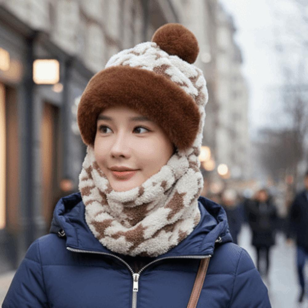 Houndstooth Pattern Plush Ski Mask Scarf Hat Breathable Neck Cover Face Cap Camping