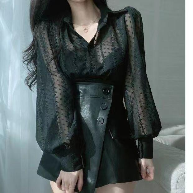 Autumn 2026 Elegant Embroidered Puff Sleeve Crochet Shirt for Women