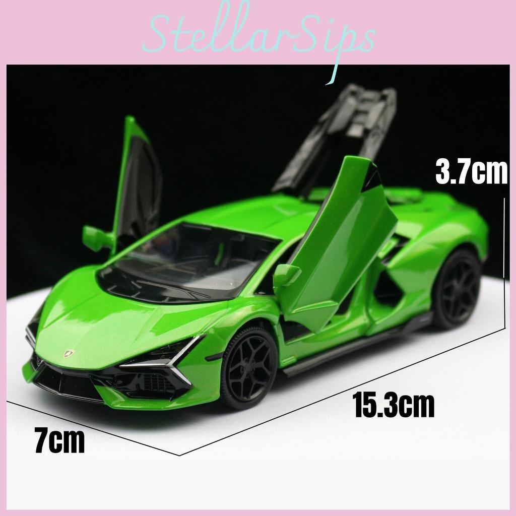 This 1:32 scale alloy car model features a detailed replica of a Lamborghini Reventn supercar, offering realistic design and precise craftsmanship. Made from durable alloy, includes sound and light effects with open-door functionality.Designed for childrens play and collection, these static models are powered by inertia control, supporting smooth rolling motion. Perfect for display or active play during indoor or outdoor activities, they provide engaging hours. Wipe clean with a damp cloth to maintain their appearance.