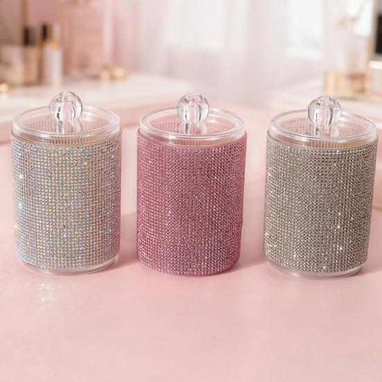 Rhinestone Storage Jar with Lid Sparkling Cotton Swab Jar Dustproof Cotton Pad Organizer for Vanity And Bathroom Countertop Storage — koupit online v obchodě na marketplace Joom