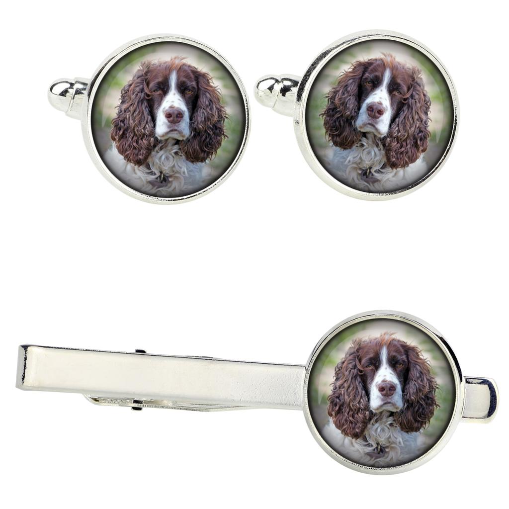 Anglický kokršpaněl - manžetové knoflíčky a kravata s vaší fotografií, ozdoba na oblek, pánské šperky značky Art-Dog.