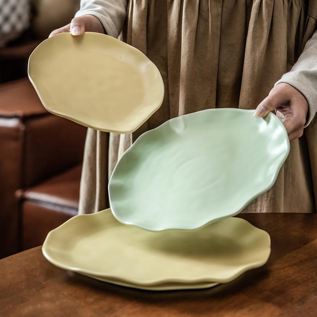 Cream Special-Shaped Ceramic Dinner Plate Creative Wavy Edge Plate Plate Tableware Household Vegetable Plate Western Dessert Plate