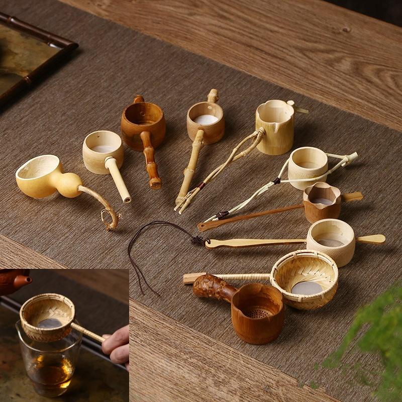 1 ks bambusové sítko na čaj TradičníCeremonialní Nádobí Japonská Ratanová Dřevěná Trychtýř na Čajové Lístky Nástroj na Sítování pro Domácí Kuchyni