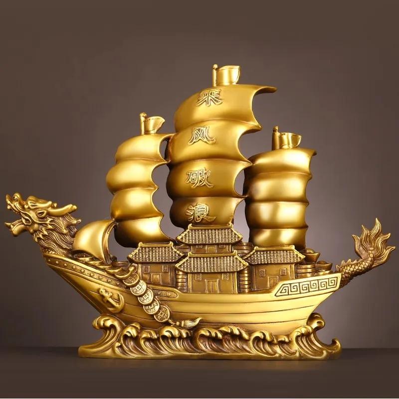 Lucky Brass Dragon Boat Decor Chinese Sailing Ship for Wealth & Success, Office/Home Decor Perfect Grand Opening Gift