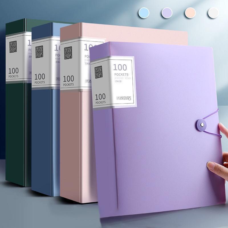 A4 Thickened Folder 100 Pages Information Book Large Capacity Diy File Folder Multifunctional Document Organizer Desktop Storage