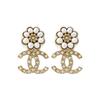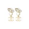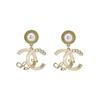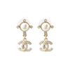 Chanel Classic Logo Inlaid Design Pearl Metal Diamond Resin Earrings Women earrings Gold A64766Y09530