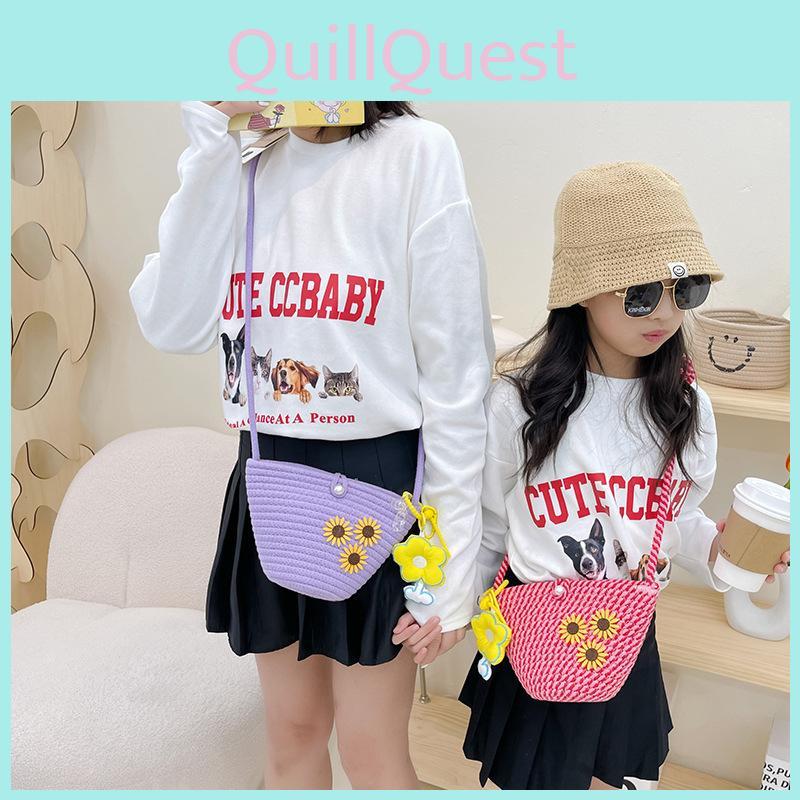 Cute And Modern Children's Woven Tote Bag With Floral Design For Summer Outings