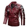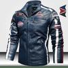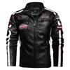 Vintage motocyklová bunda Pánská móda Nová motorkářská kožená bunda Pánská výšivka Bomber Coat Zimní fleece Pu Overcoat