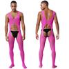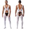 Mens See Through Sheer Jumpsuit Sleeveless Hollow Out Opening Crotch Bodysuit
