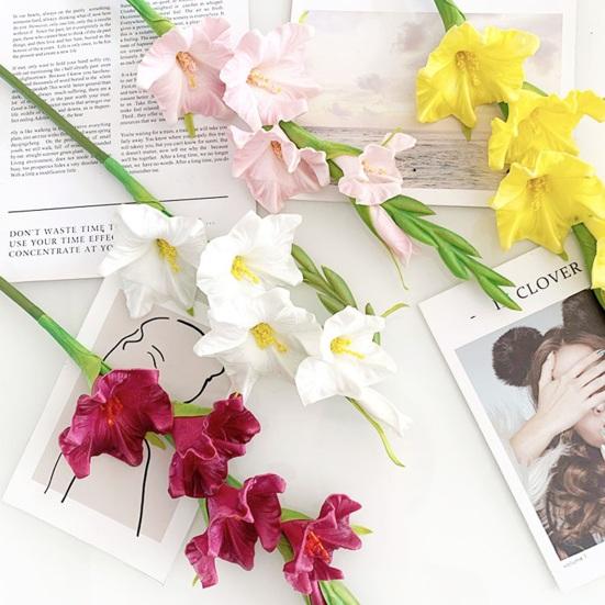 Artificial Gladiolus Flowers 22" Real Touch Flower with Long Stem 4 Full Blooms And 1 Bud Fake Orchid for Vase Wedding Table Centerpiece Home Party