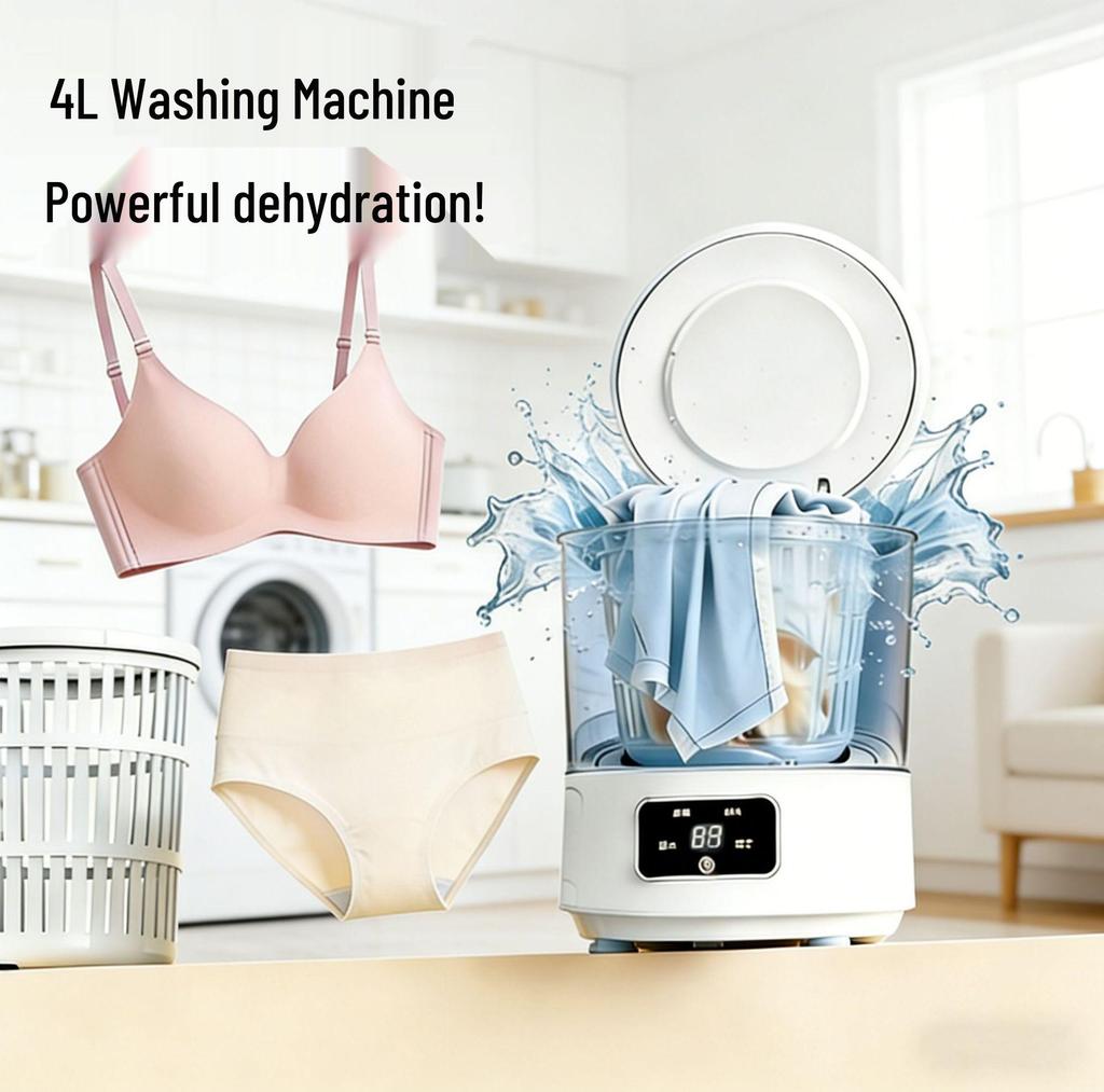 4L Portable Mini Washing Machine: Foldable, Rechargeable, Compact Washer for Underwear, Baby Clothes, Socks, and Dorm Laundry.