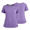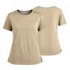 Dámská módní barevná kulatý výstřih kapsa krátký rukáv košile s rozparkem spodní lem uniforma a pracovní top — koupit online v obchodě na marketplace Joom