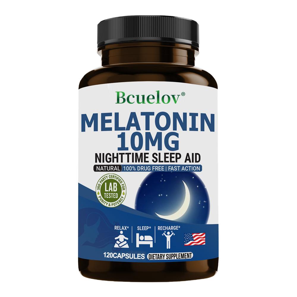 Bcuelov Melatonin Capsules 10mg Relieve Emotions and Improve Difficulty Falling Asleep 120 Capsules