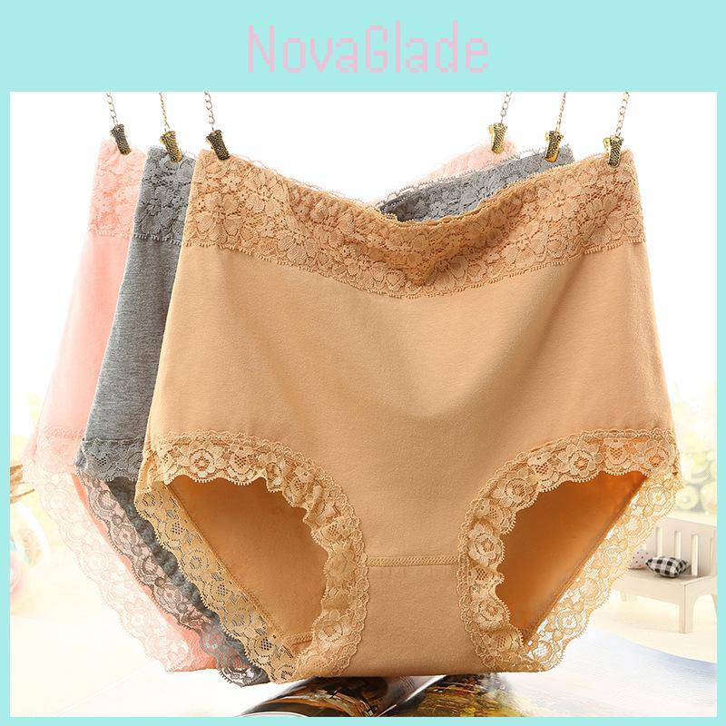 Comfortable High Waist Cotton Women's Underwear With Lace Trim For Perfect Shaping — koupit online v obchodě na marketplace Joom