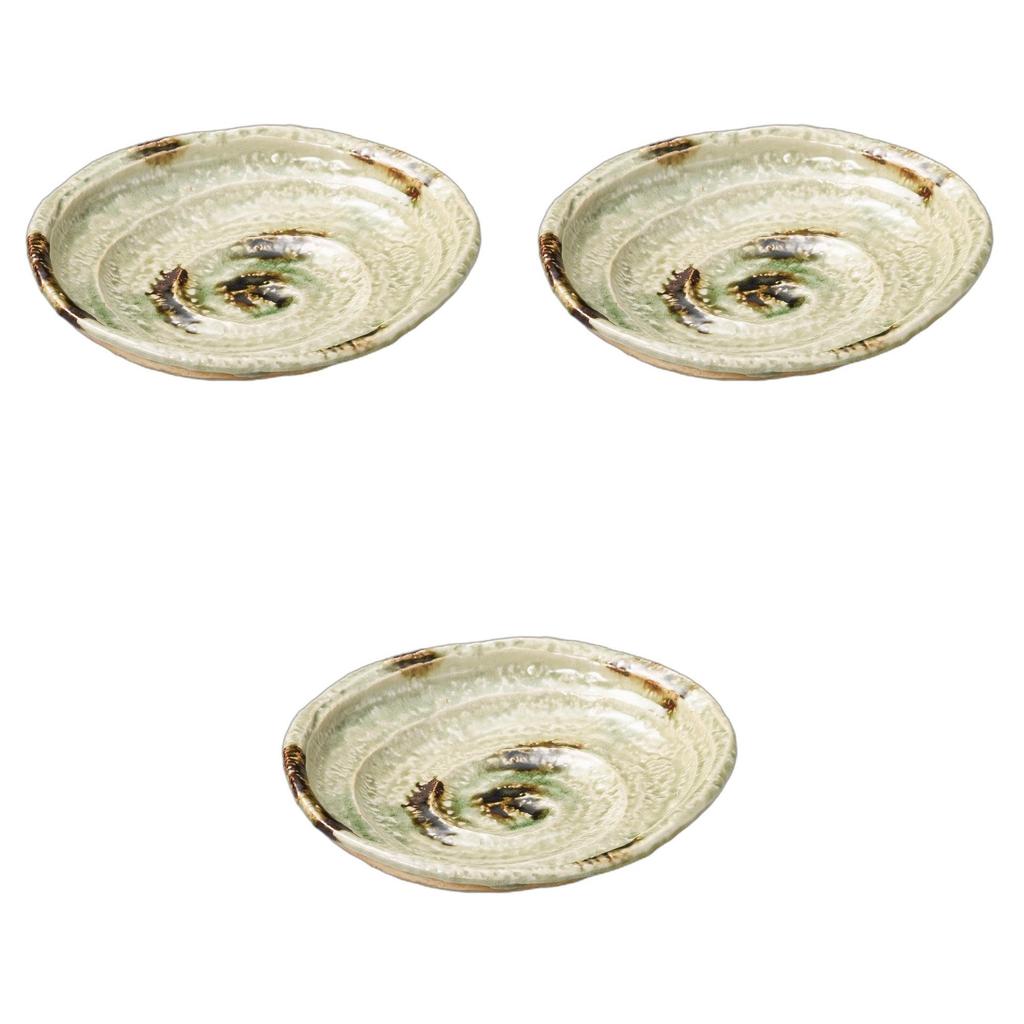 Set of 3 Curved Plates x x 4 Ceramic Setomonohonpo Glass-Glazed, 7-inch [22 20.5 cm] Medium-sized Plates,