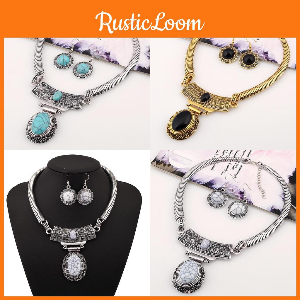 Ethnic Style Simulation Gemstone Decoration Women Necklace And Earring Set For Men And Women — koupit online v obchodě na marketplace Joom