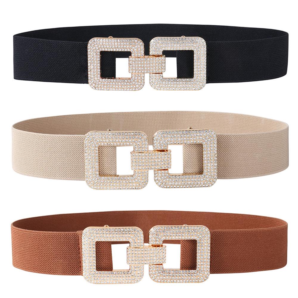 Elegant Rhinestone Women's Leather Belt with Stylish Buckle and Elastic Waistband — koupit online v obchodě na marketplace Joom